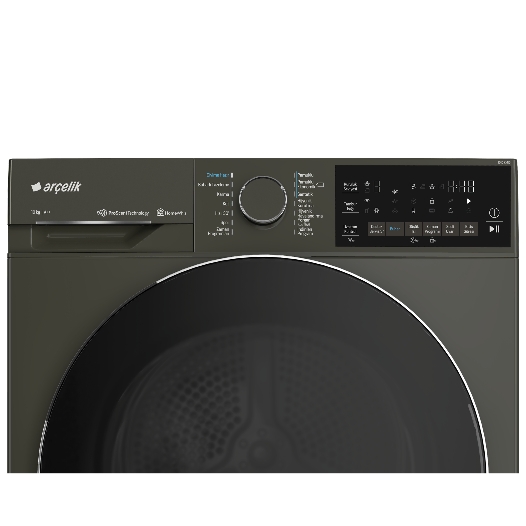 Otomatik Kırışık Önleme Fonksiyonu Kurutma işlemi bittikten sonra, çamaşırların makineden boşaltılamaması durumunda, belirli aralıklarda otomatik olarak kırışık azaltma hareketi yapılmasını sağlar. Destek Servis Hizmeti Destek servis hizmeti özelliğine sahip internet bağlantılı beyaz eşyalarınızda ''Destek Servis'' tuşuna 3 saniye basılı tutarak 15 dakika içerisinde müşteri temsilerimiz tarafından aranır ve hızlı teknik servis çözümlerine ulaşabilirsiniz. Özel Tasarım Tambur Tamburuna özel cam dalgalar ve eğrisi, giysilerin daha kolay hareket etmesine yardımcı olmaktadır. Bu tasarım, temizleme performansını arttırırken, enerji ihtiyacını da azaltarak daha iyi bir karıştırma etkisi sağlar. Ayrıca, dalga formu da çamaşırların daha özenle yıkanmasını kolaylaştırır. Tüm giysiler için nazik yıkama koşulları sağlar ve böylece onları daha uzun süre dayanır. Akıllı Nem Sensörü Kuruluk seviyesini algılayarak, kurutma süresini istenilen kuruluk derecesine göre hesaplar ve otomatik olarak ayarlar böylece az kapasite çamaşır kuruturken daha az enerji harcar. Isı Pompalı Kurutma Teknolojisi Isı pompalı kurutma teknolojisi, geleneksel kondenserli kurutma makinelerine göre kıyafetlerinizi daha verimli ve renklerini koruyarak kurutur. Pratik Filtre Kapaktan kolayca ulaşılabilen ve iç içe geçmiş iki katmandan oluşan bir filtre kolayca temizlenebilmektedir. Bu özel filtre sayesinde makineyi 6 ayda bir temizlemek yeterli olacaktır. Isı Pompalı Kurutma Kurutma makineniz ısı pompalı kurutma teknolojisi ile daha yüksek enerji sınıfına sahip olur ve renklerini koruyarak kurutur. ProScent Teknolojisi Üç farklı koku seçeneği bulunan kapsüllerin üzerinden geçen kurutma havası esans kokularını çamaşırlara gönderir. Tek kapsülle 30 kurutmaya kadar ferahlık sağlanır. IronTouch Arçelik IronTouch teknolojisi, özel püskürtme teknolojisi sayesinde çamaşırları ütüye ihtiyaç kalmadan giyime hazır hale getirir.