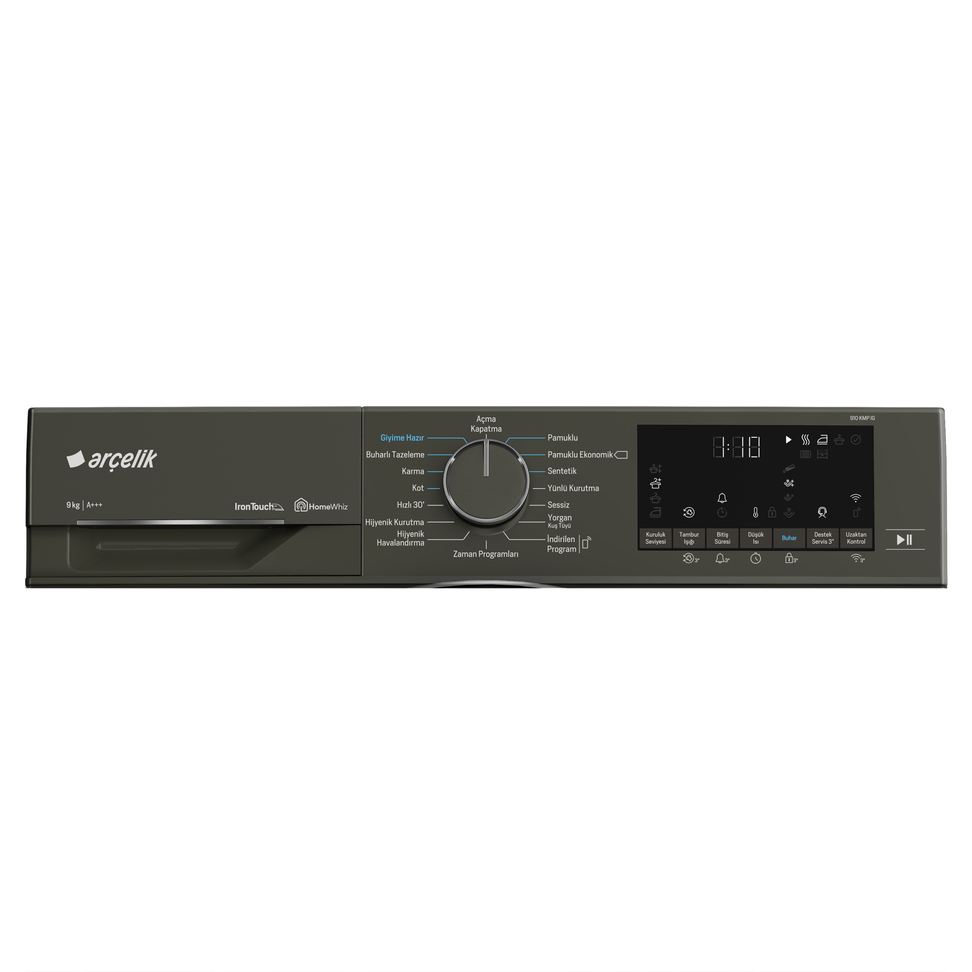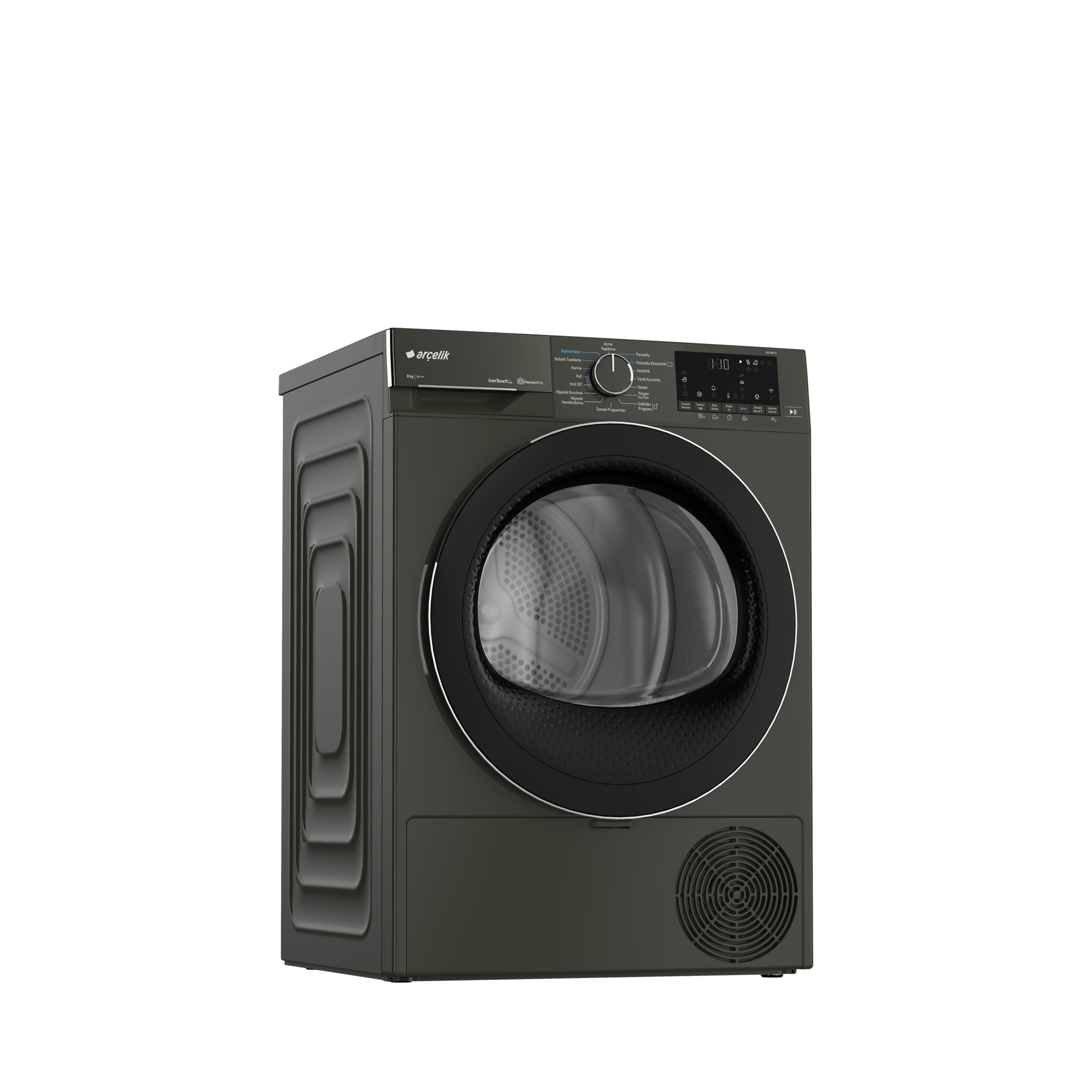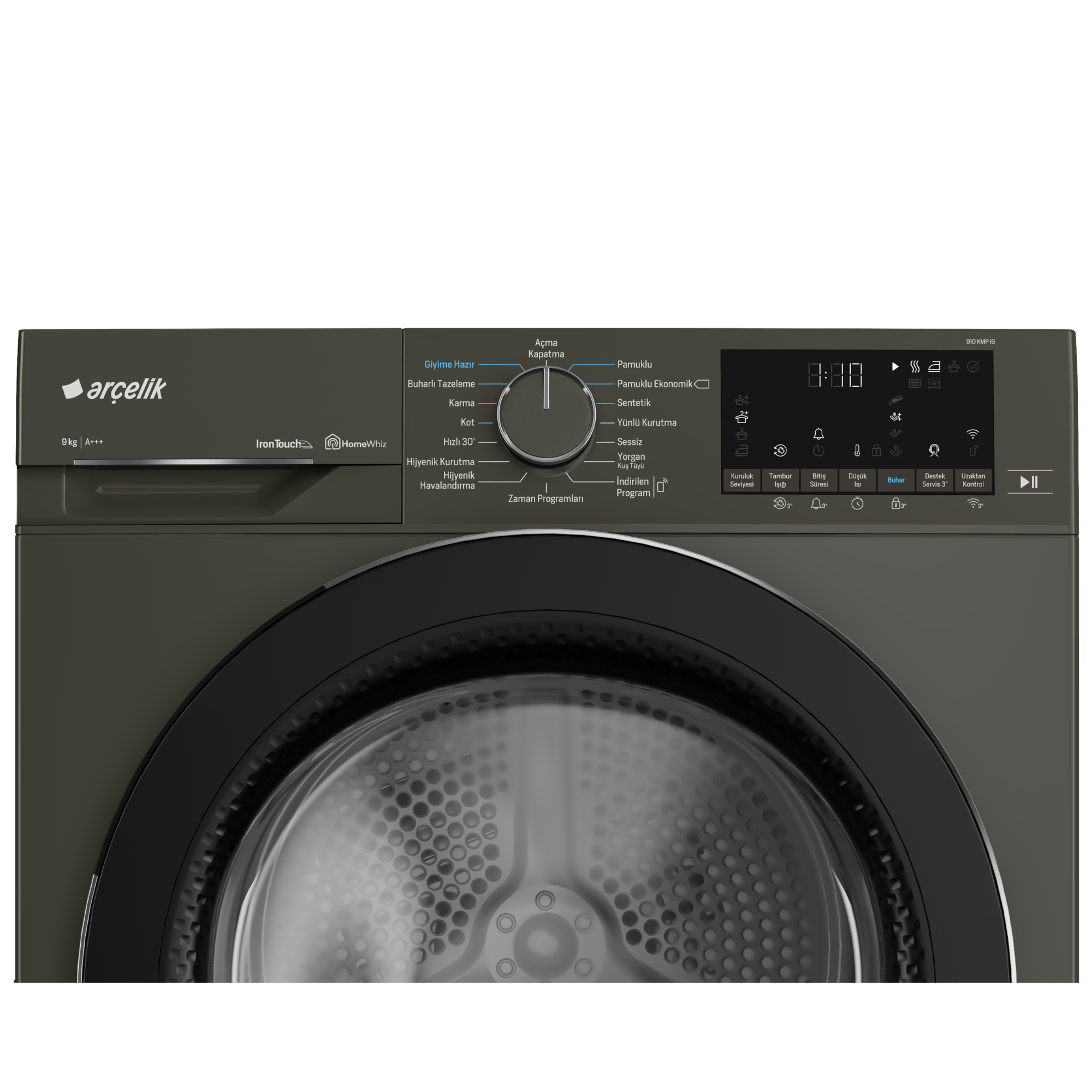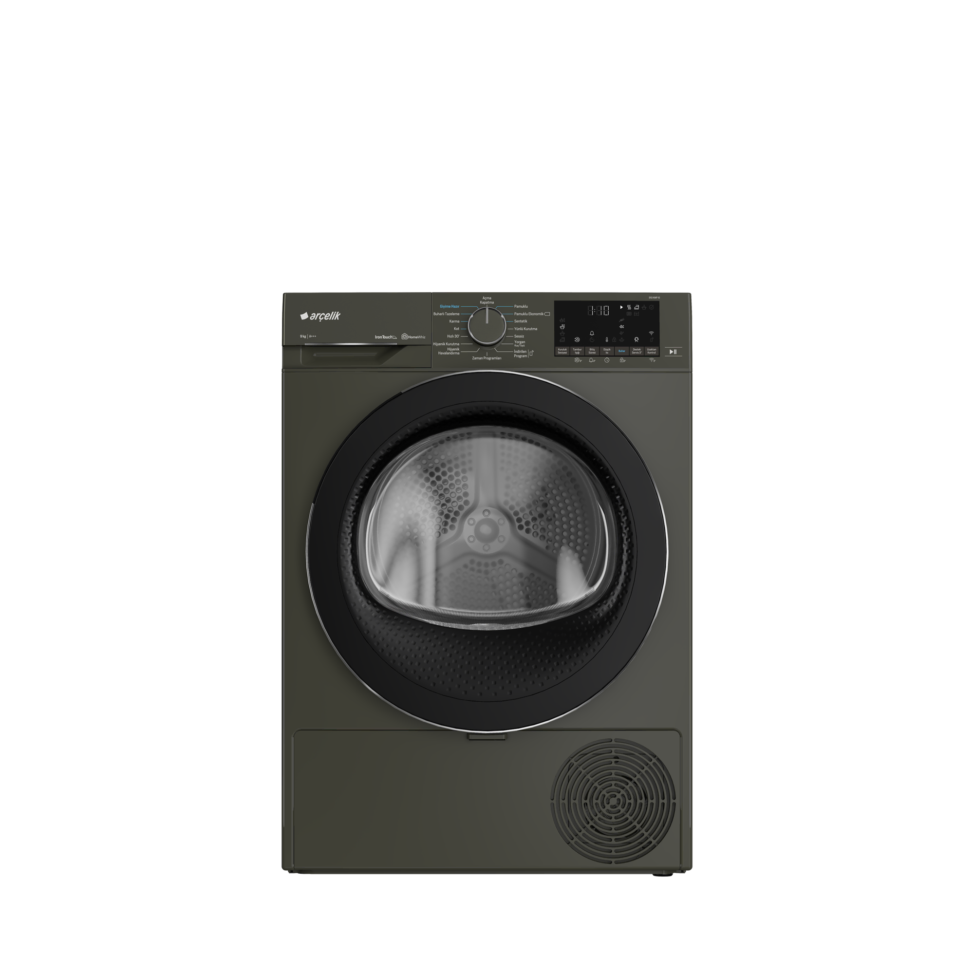 Otomatik Kırışık Önleme Fonksiyonu Kurutma işlemi bittikten sonra, çamaşırların makineden boşaltılamaması durumunda, belirli aralıklarda otomatik olarak kırışık azaltma hareketi yapılmasını sağlar. Prosmart Inverter Motor Özel olarak geliştirilen inverter motorumuzda standart motorlarda kullanılan fırça yapısı, mıknatıslar ile değiştirilmiştir. Bu sayede sürtünme olmadığından motorun yıpranma oranı düşer ve hem enerjiden tasarruf edilir hem de motorun ömrü uzar. Prosmart Inverter motorlu makinelerde 10 yıl motor garantisi sunulmaktadır. Destek Servis Hizmeti Destek servis hizmeti özelliğine sahip internet bağlantılı beyaz eşyalarınızda ''Destek Servis'' tuşuna 3 saniye basılı tutarak 15 dakika içerisinde müşteri temsilerimiz tarafından aranır ve hızlı teknik servis çözümlerine ulaşabilirsiniz. Özel Tasarım Tambur Tamburuna özel cam dalgalar ve eğrisi, giysilerin daha kolay hareket etmesine yardımcı olmaktadır. Bu tasarım, temizleme performansını arttırırken, enerji ihtiyacını da azaltarak daha iyi bir karıştırma etkisi sağlar. Ayrıca, dalga formu da çamaşırların daha özenle yıkanmasını kolaylaştırır. Tüm giysiler için nazik yıkama koşulları sağlar ve böylece onları daha uzun süre dayanır. Akıllı Nem Sensörü Kuruluk seviyesini algılayarak, kurutma süresini istenilen kuruluk derecesine göre hesaplar ve otomatik olarak ayarlar böylece az kapasite çamaşır kuruturken daha az enerji harcar. Isı Pompalı Kurutma Teknolojisi Isı pompalı kurutma teknolojisi, geleneksel kondenserli kurutma makinelerine göre kıyafetlerinizi daha verimli ve renklerini koruyarak kurutur. Pratik Filtre Kapaktan kolayca ulaşılabilen ve iç içe geçmiş iki katmandan oluşan bir filtre kolayca temizlenebilmektedir. Bu özel filtre sayesinde makineyi 6 ayda bir temizlemek yeterli olacaktır. Değişebilir Kapak Yönü Makinenizin yukleme kapağının yönu yerleştirme alanınıza uygun değilse ters yöne açılabilecek şekilde yetkili servis aracılığıyla ayarlanabilmektedir. Isı Pompalı Kurutma Kurutma makineniz ısı pompalı kurutma teknolojisi ile daha yüksek enerji sınıfına sahip olur ve renklerini koruyarak kurutur. ProScent Teknolojisi Üç farklı koku seçeneği bulunan kapsüllerin üzerinden geçen kurutma havası esans kokularını çamaşırlara gönderir. Tek kapsülle 30 kurutmaya kadar ferahlık sağlanır. IronTouch Arçelik IronTouch teknolojisi, özel püskürtme teknolojisi sayesinde çamaşırları ütüye ihtiyaç kalmadan giyime hazır hale